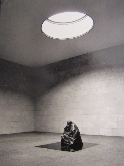 The Neue Wache: here Kollwitz has a sculpture of mother and her dead son, based on the Christian imagery of Mary cradling Jesus after his death by crucifixion. Why do we crucify so many of our young via endless war?