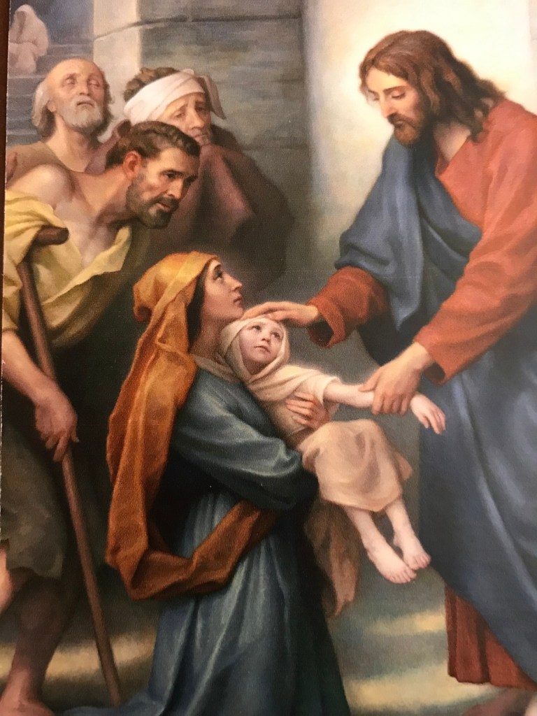 Being “pro-life” shouldn’t end when the baby is born. Jesus helped the poor, the lame, and the sick. He didn’t tell them to get a job while cutting their benefits. Image from a prayer card sent to me by my local bishop.
