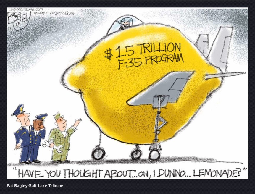Now, tote it up. By canceling the F-35, the B-21, the Sentinel, and the KC-46, I singlehandedly saved the American taxpayer roughly $1.5 trillion without hurting America’s national defense in the least. But I’ve also just lost all credibility (assuming I had any left) with my old service.